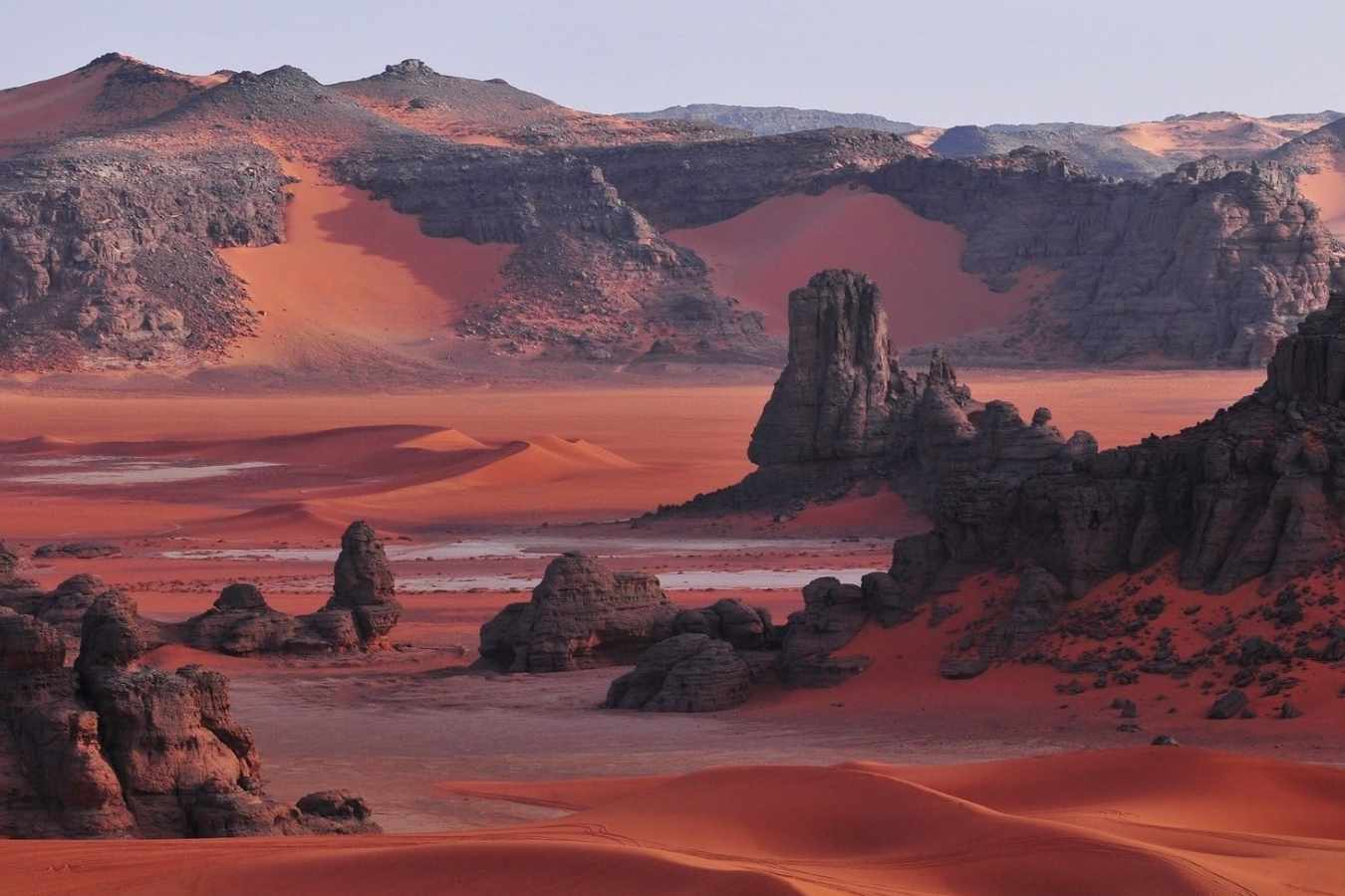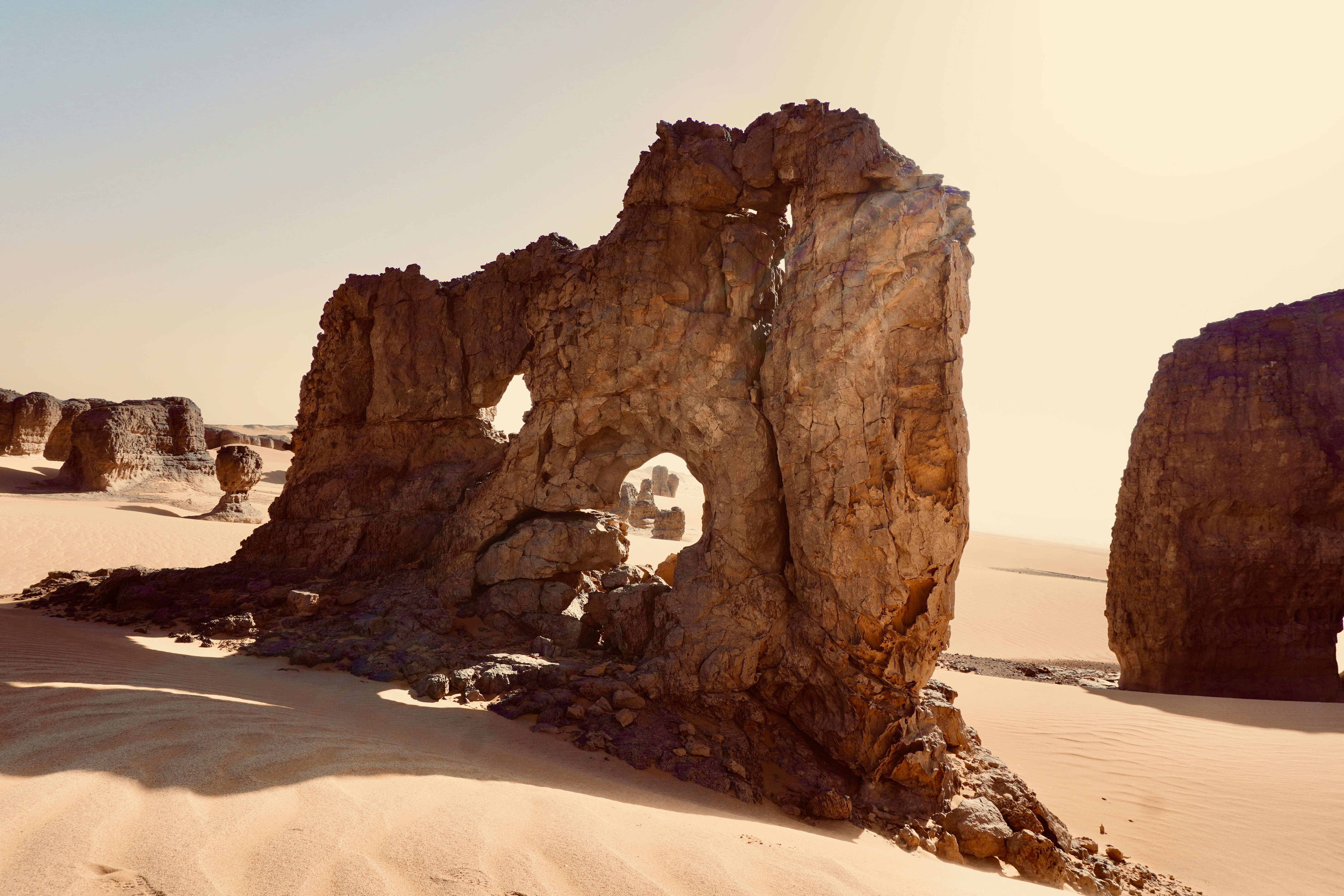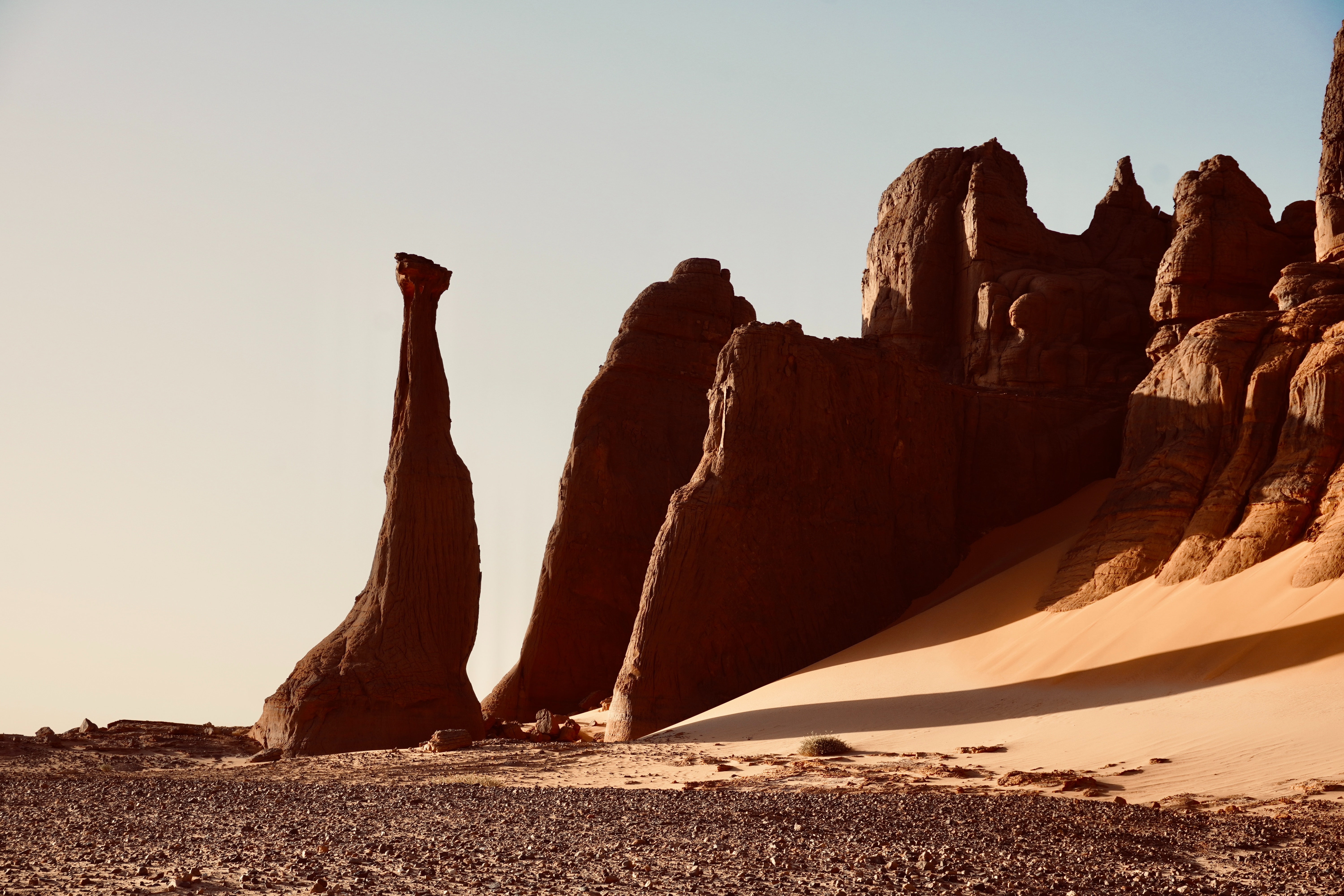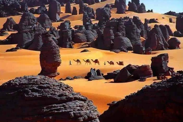The Algerian Desert, also known as the Sahara Desert in Algeria, is a vast, arid region located in North Africa. It is the largest hot desert in the world, covering a substantial portion of Algeria's territory. The Algerian Desert is characterized by its extreme aridity, with very low annual rainfall, high temperatures, and expansive stretches of sand dunes, rocky plateaus, and barren landscapes.
